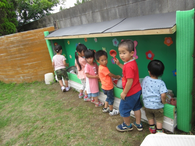 当法人環境整備課の方々がブロック塀を上手に使用して、安全面にも十分配慮し、子供たちの目の高さに合わせて作っていただきました。